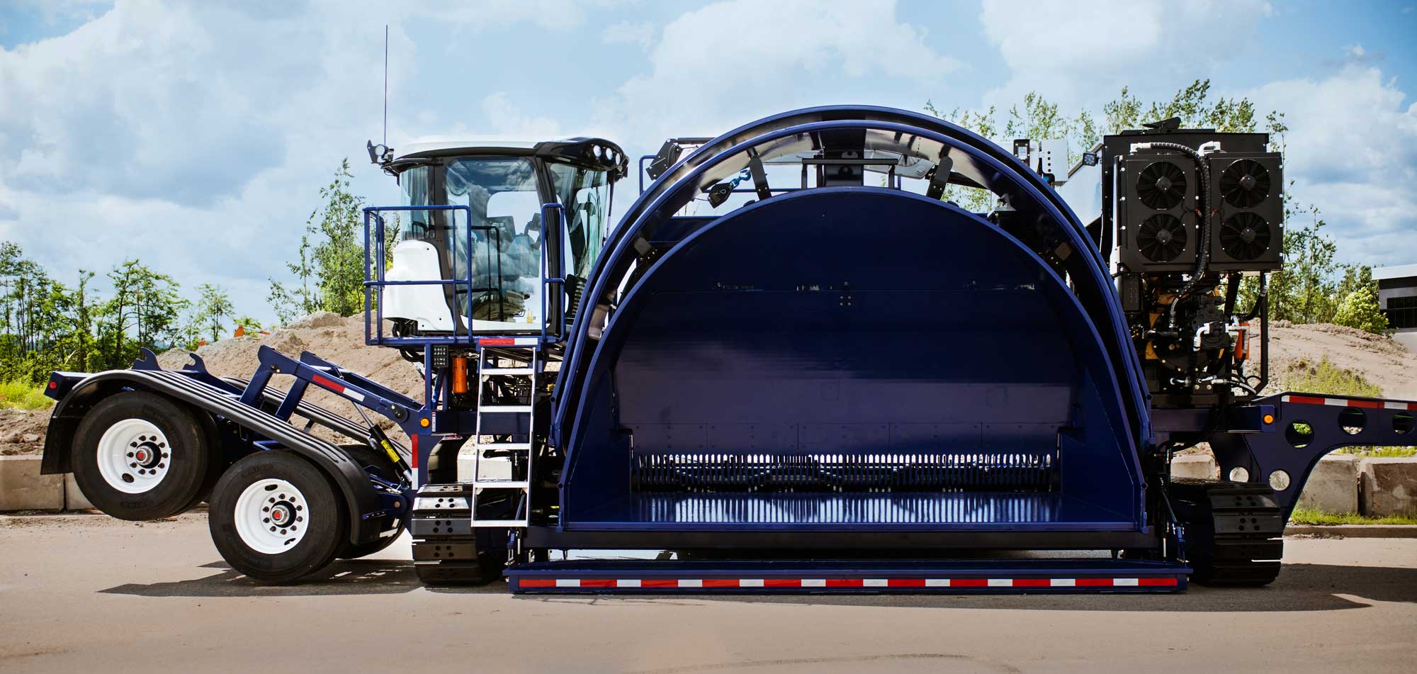 This is a 14' tunnel machine (10' & 12' machines to follow).  It is self-propelled with a Cat C15 540hp engine. 12' rotor (solid 9" wide) and feedtable with a full hydraulic drive add to the speed and efficiency of the machine. The unique tracks system gives it the best compaction ability of any bagger on the market without the need of internal cables, anchors or external backstops to compact.  A spacious and comfortable cab with simple joystick control round out the ease of operation of the machine.